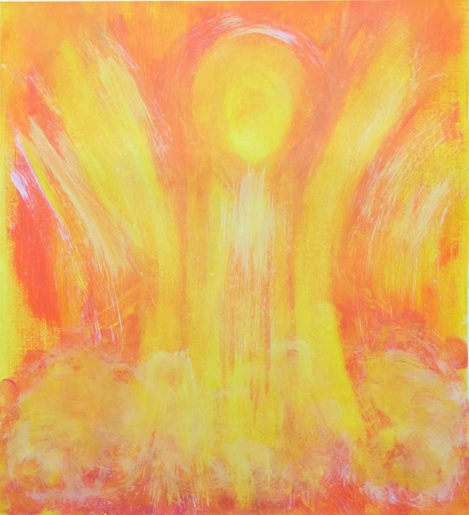 Malerisch lässt du dich auf diese Schwingungen ein und rückst deinem Engel dadurch immer ein Stück näher. Wenn du dich weit genug in seine Schwingung hineinarbeitest, kannst du seine Energie fühlen. Dein Engel begegnet dir auf deiner Leinwand. Du spürst ihn und nimmst ihn wahr. Und du siehst ihn. Ob er sich abstrakt zeigt oder ob er eine Form annimmt, wird sich zeigen. Lass dich auf die Energie ein und male das, was kommt. Es wird das Richtige sein. Erzwinge nichts. Dein Engel führt dich.